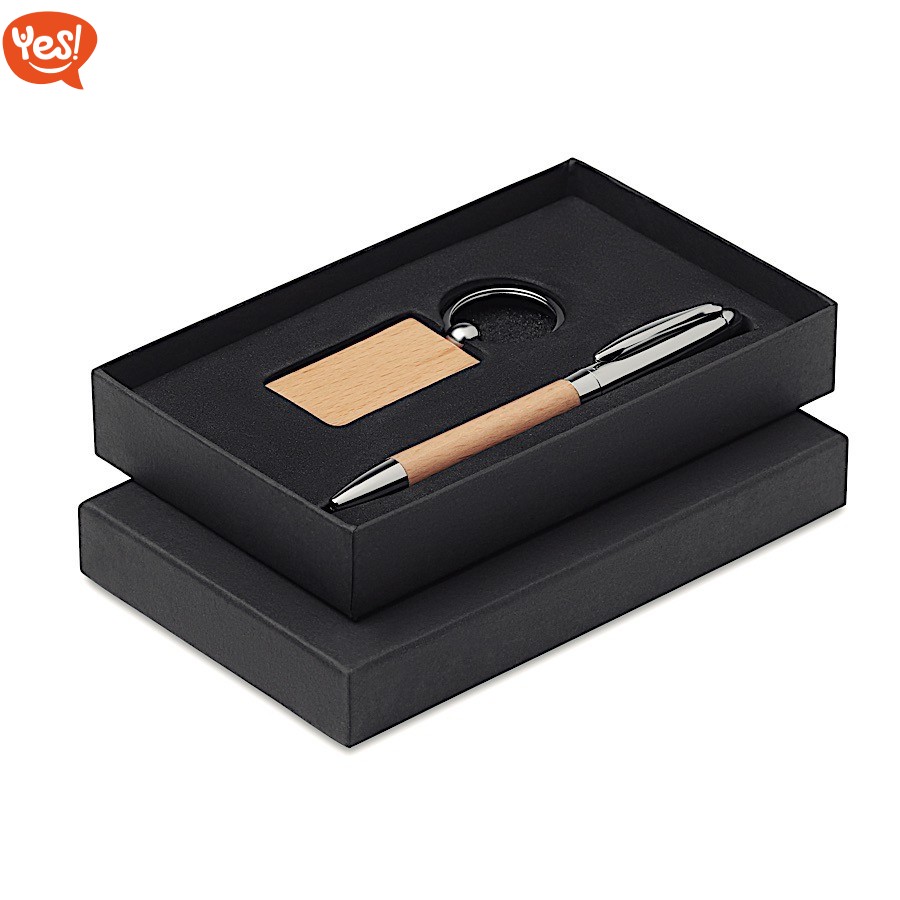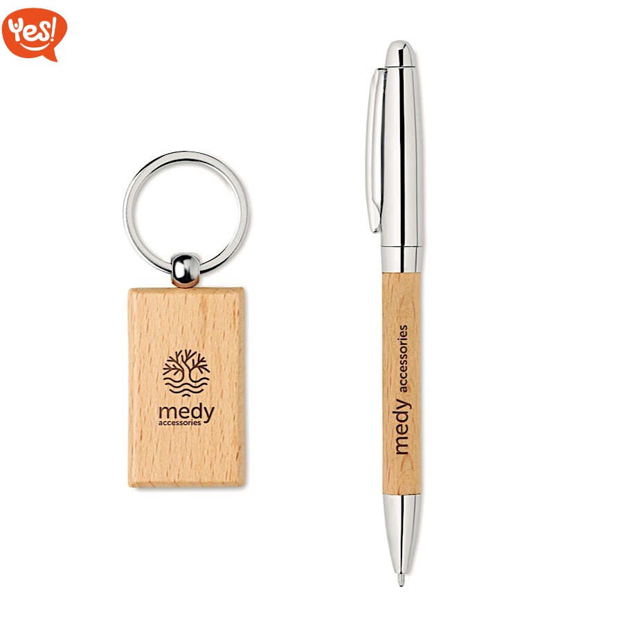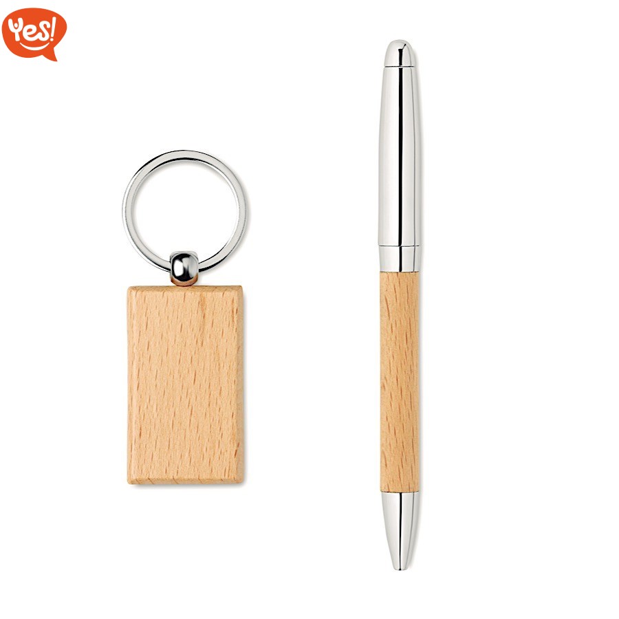 Set regalo penna e portachiavi in legno | personalizzabile con il tuo logo